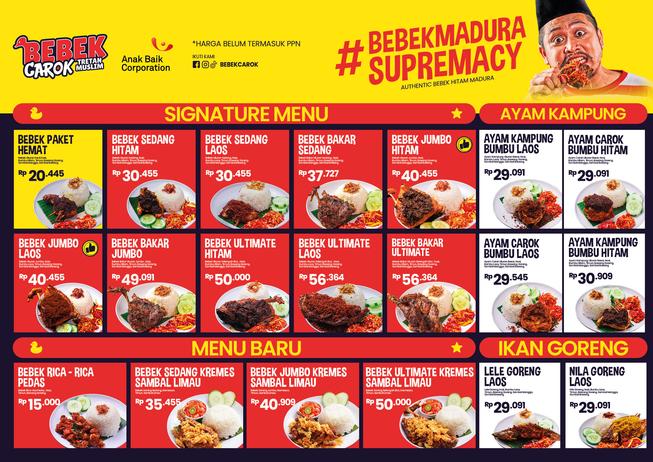 Bebek Carok adalah sebuah restoran yang dibangun di atas fondasi kecintaan terhadap kuliner dan tekad untuk menghadirkan nuansa Indonesia yang autentik dalam setiap sajiannya. Didirikan oleh Tretan Muslim, seorang komedian ternama yang juga dikenal sebagai penggemar kuliner, Bebek Carok berfokus untuk menawarkan pengalaman bersantap yang otentik melalui hidangan utama mereka, yaitu bebek dengan bumbu khas yang kaya rempah.